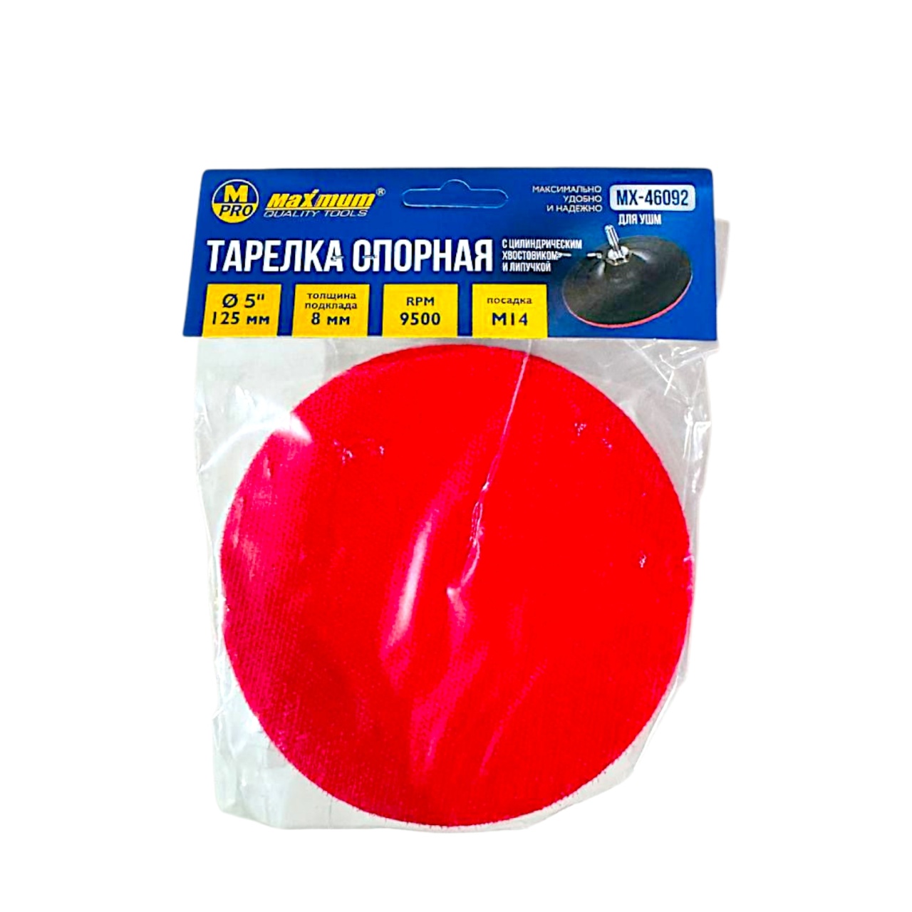 Тарелка опорная 3×125 мм для УШМ, с липучкой, цилиндрический хвостовик, "MAXIMUM" (Максимум)MX 46085